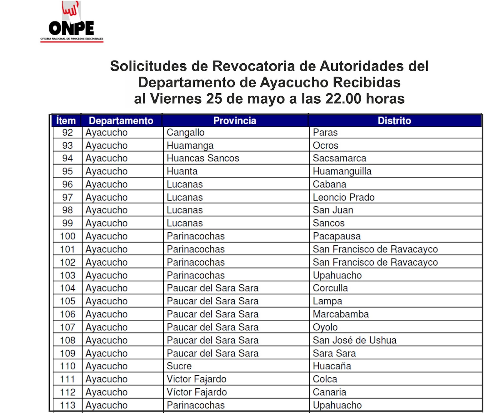Cifra final: ONPE remitió 283 solicitudes de revocatoria que reunieron requisitos de ley